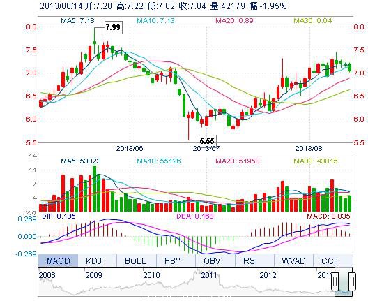 今開: 7.20 成交量: 4.22萬手 振幅: 2.79% 最高: 7.22 成交額: 2996.55萬元 換手率: 1.53% 最低: 7.02 總市值: 20.06億 市凈率: 3.19 昨收: 7.18 流通市值: ...