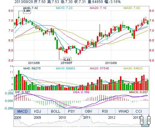 | 今 開: | 7.50 | 成交量: | 6.49萬手 | 振 幅: | 3.05% |