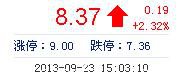 今開: 8.16 成交量: 6.26萬手 振幅: 2.69% 最高: 8.38 成交額: 5178.45萬元 換手率: 1.43% 最低: 8.16 總市值: 36.56億 市凈率: 2.60 昨收: 8.18 流通市值: ...