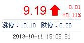 今開: 9.17 成交量: 5.51萬手 振幅: 2.18% 最高: 9.26 成交額: 5052.15萬元 換手率: 2.01% 最低: 9.06 總市值: 26.19億 市凈率: 4.27 昨收: 9.18 流通市值: ...