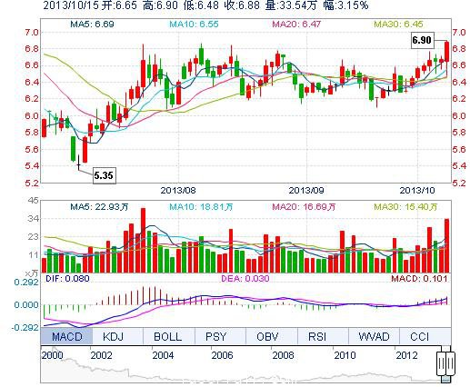 今開: 6.65 成交量: 33.54萬(wàn)手 振幅: 6.30% 最高: 6.90 成交額: 2.25億元 換手率: 3.76% 最低: 6.48 總市值: 61.31億 市凈率: 2.33 昨收: 6.67 流通市值: 61...
