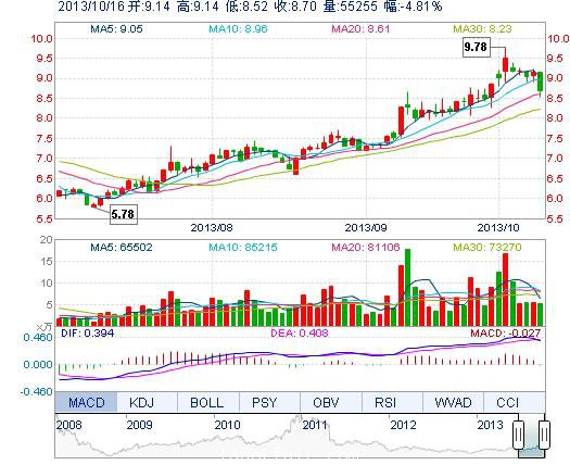 | 最 低: | 8.52 | 總市值: | 24.80億 | 市凈率: | 4.04 |