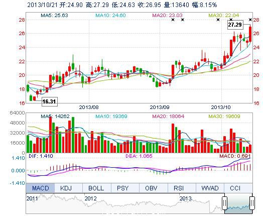 | 最 低: | 24.63 | 總市值: | 18.87億 | 市凈率: | 6.51 |