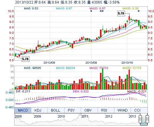 | 今 開: | 8.64 | 成交量: | 4.31萬手 | 振 幅: | 3.35% |