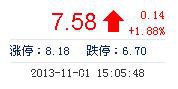 | 最 高: | 7.63 | 成交額: | 2001.59萬(wàn)元 | 換手率: | 0.97% |