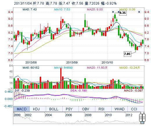 | 今 開(kāi): | 7.78 | 成交量: | 7.20萬(wàn)手 | 振 幅: | 4.06% |