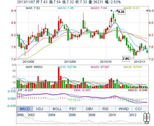 今開(kāi): 7.43 成交量: 3.62萬(wàn)手 振幅: 2.93% 最高: 7.54 成交額: 2690.67萬(wàn)元 換手率: 0.83% 最低: 7.32 總市值: 32.02億 市凈率: 2.34 昨收: 7.52 流通市值: ...
