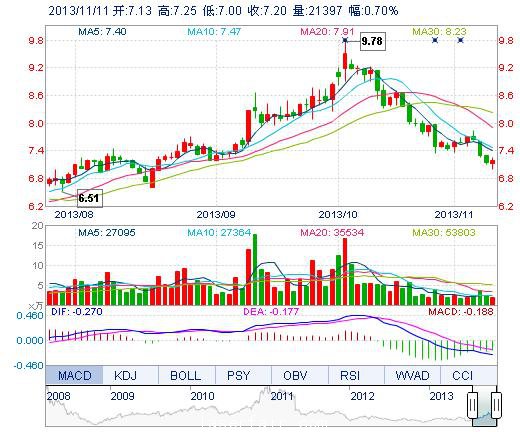 | 今 開: | 7.13 | 成交量: | 2.14萬手 | 振 幅: | 3.50% |