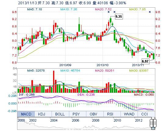 | 最 低: | 6.97 | 總市值: | 30.53億 | 市凈率: | 2.23 |