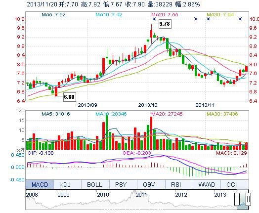 | 今 開: | 7.70 | 成交量: | 3.82萬手 | 振 幅: | 3.26% |
