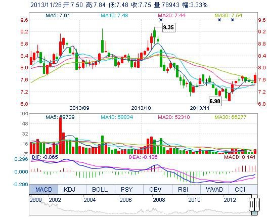 今開: 7.50 成交量: 7.89萬手 振幅: 4.80% 最高: 7.84 成交額: 6064.60萬元 換手率: 1.81% 最低: 7.48 總市值: 33.85億 市凈率: 2.48 昨收: 7.50 流通市值: ...