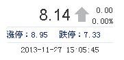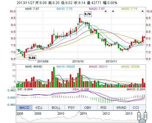 今開: 8.08 成交量: 4.28萬手 振幅: 2.21% 最高: 8.20 成交額: 3463.77萬元 換手率: 1.56% 最低: 8.02 總市值: 23.20億 市凈率: 3.72 昨收: 8.14 流通市值: ...