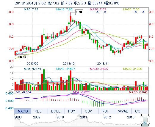 今開(kāi): 7.62 成交量: 3.32萬(wàn)手 振幅: 3.00% 最高: 7.82 成交額: 2579.27萬(wàn)元 換手率: 1.21% 最低: 7.59 總市值: 22.03億 市凈率: 3.53 昨收: 7.67 流通市值: ...