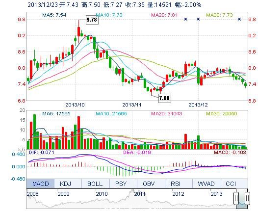 今開: 7.43 成交量: 1.46萬手 振幅: 3.07% 最高: 7.50 成交額: 1075.52萬元 換手率: 0.53% 最低: 7.27 總市值: 20.95億 市凈率: 3.36 昨收: 7.50 流通市值: ...