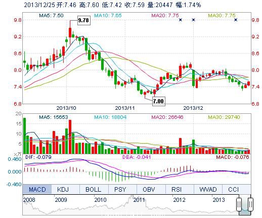 | 最 低: | 7.42 | 總市值: | 21.63億 | 市凈率: | 3.47 |