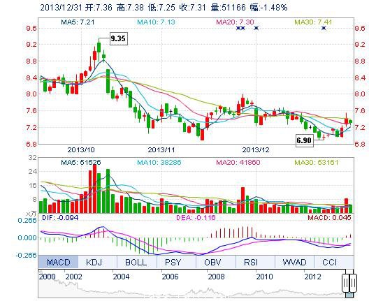今開(kāi): 7.36 成交量: 5.12萬(wàn)手 振幅: 1.75% 最高: 7.38 成交額: 3741.72萬(wàn)元 換手率: 1.17% 最低: 7.25 總市值: 31.93億 市凈率: 2.34 昨收: 7.42 流通市值: ...