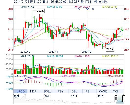 | 最 低: | 30.60 | 總市值: | 133.56億 | 市凈率: | 8.23 |