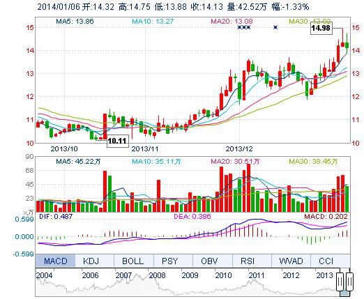 | 最 低: | 13.88 | 總市值: | 147.57億 | 市凈率: | 4.22 |