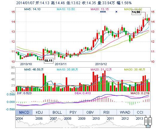 今開: 14.13 成交量: 33.94萬手 振幅: 5.94% 最高: 14.46 成交額: 4.78億元 換手率: 3.59% 最低: 13.62 總市值: 149.87億 市凈率: 4.29 昨收: 14.13 流通市值...