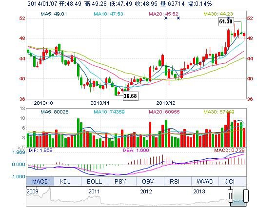 | 最 高: | 49.28 | 成交額: | 3.03億元 | 換手率: | 2.18% |
