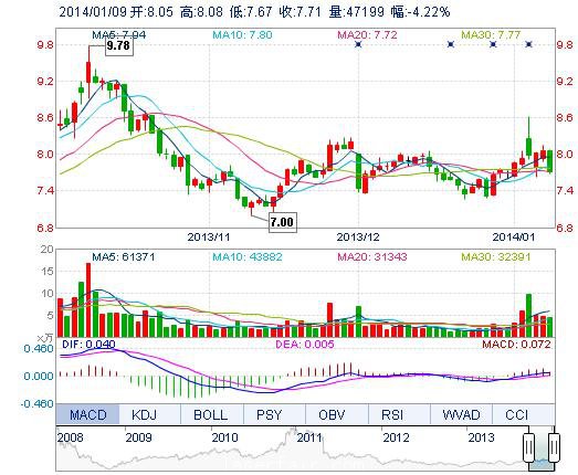 | 今 開: | 8.05 | 成交量: | 4.72萬手 | 振 幅: | 5.09% |