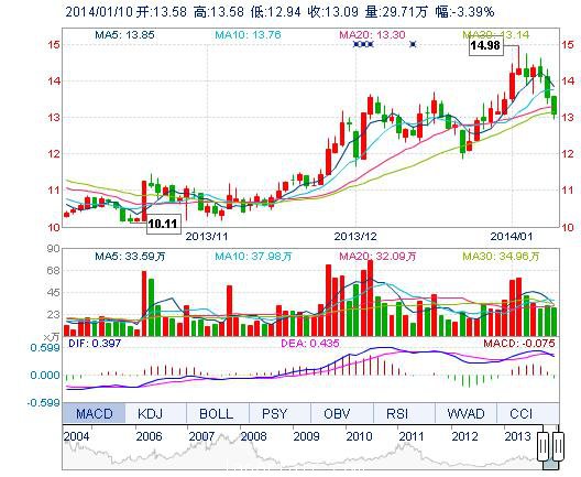| 最 高: | 13.58 | 成交額: | 3.92億元 | 換手率: | 3.14% |