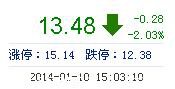 | 最 高: | 14.07 | 成交額: | 6764.76萬元 | 換手率: | 2.89% |