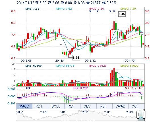| 最 低: | 6.88 | 總市值: | 13.87億 | 市凈率: | 2.82 |