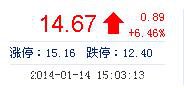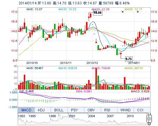 | 最 高: | 14.70 | 成交額: | 8149.71萬(wàn)元 | 換手率: | 3.27% |