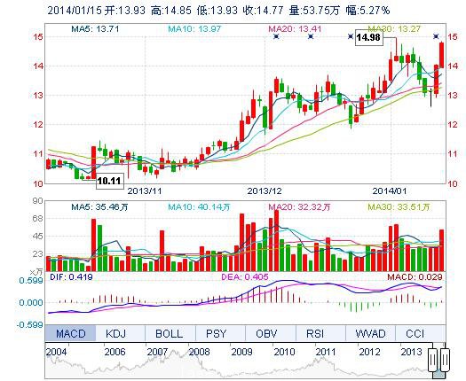 今開: 13.93 成交量: 53.75萬手 振幅: 6.56% 最高: 14.85 成交額: 7.78億元 換手率: 5.68% 最低: 13.93 總市值: 154.26億 市凈率: 4.41 昨收: 14.03 流通市值...