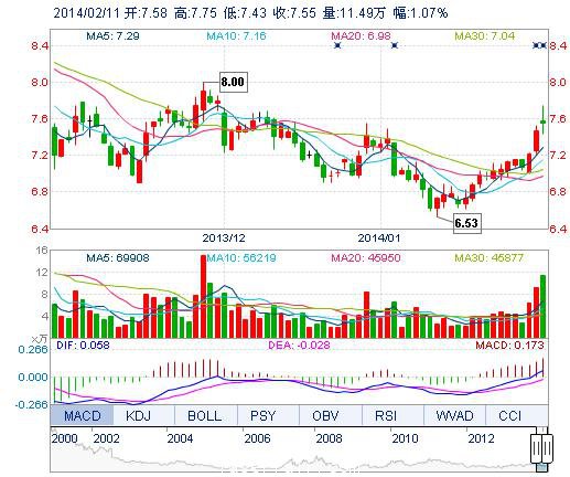 | 今 開: | 7.58 | 成交量: | 11.49萬手 | 振 幅: | 4.28% |