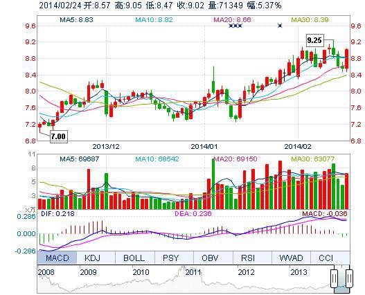 今 開(kāi): | 8.57 | 成交量: | 7.13萬(wàn)手 | 振 幅: | 6.78% |
