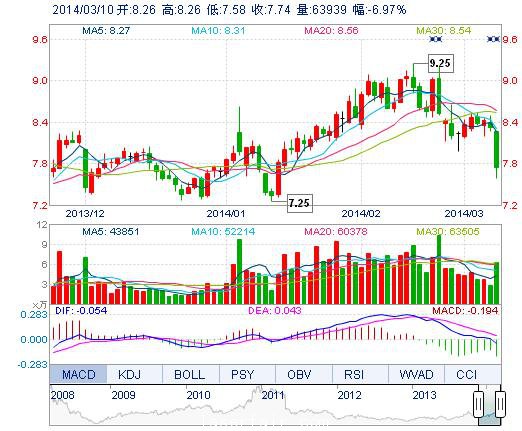 | 今 開: | 8.26 | 成交量: | 6.39萬手 | 振 幅: | 8.17% |