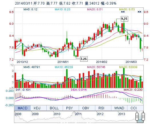 | 今 開: | 7.70 | 成交量: | 3.40萬手 | 振 幅: | 1.94% |