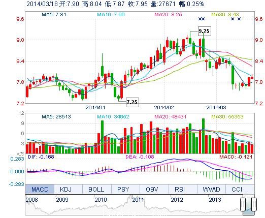 | 今 開: | 7.90 | 成交量: | 2.77萬(wàn)手 | 振 幅: | 2.14% |