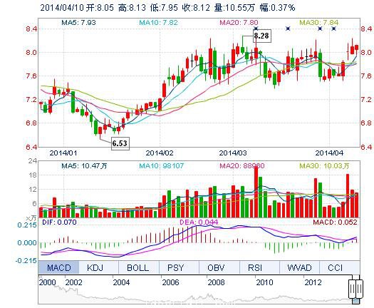 | 今 開: | 8.05 | 成交量: | 10.55萬手 | 振 幅: | 2.22% |