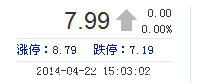 | 昨 收: | 7.99 | 流通市值: | 34.90億 | 市盈率TTM: | 91.96 |