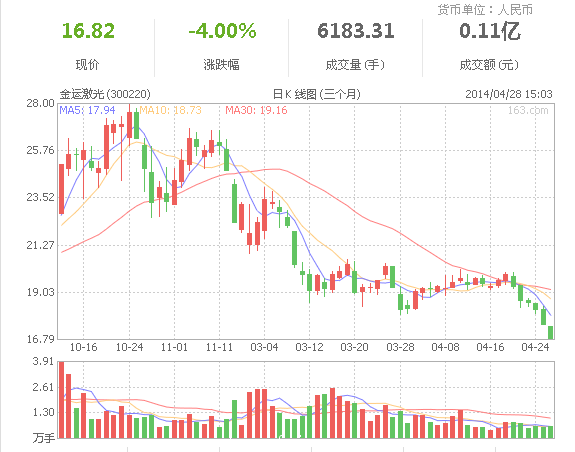 金運(yùn)激光(300220)28日晚間公布2014年一季度報(bào)告。報(bào)告顯示,期內(nèi)公司業(yè)務(wù)收入3659.19萬(wàn)元,比去年同期增加13.10%;歸屬于公司普通股股東的凈利潤(rùn)384.59萬(wàn)元,比去年同...