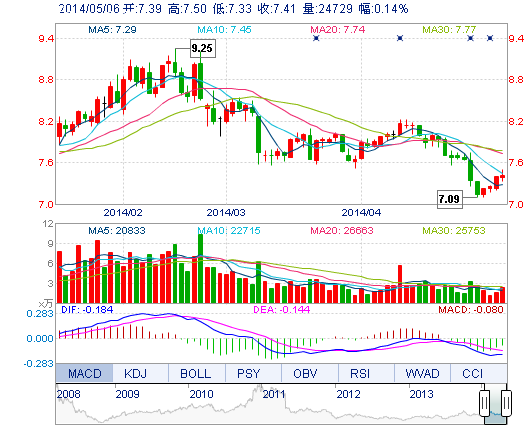 今 開: | 7.39 | 成交量: | 2.47萬手 | 振 幅: | 2.30% |