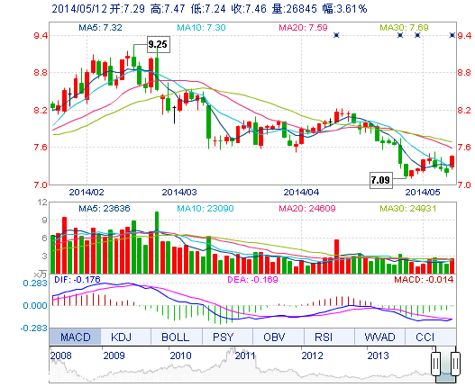 今開: 7.29 成交量: 2.68萬手 振幅: 3.19% 最高: 7.47 成交額: 1983.06萬元 換手率: 0.98% 最低: 7.24 總市值: 21.26億 市凈率: 3.31 昨收: 7.20 流通市值: ...