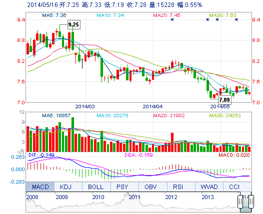 今開: 7.25 成交量: 1.52萬手 振幅: 1.93% 最高: 7.33 成交額: 1102.03萬元 換手率: 0.55% 最低: 7.19 總市值: 20.75億 市凈率: 3.23 昨收: 7.24 流通市值: ...
