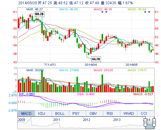 | 今 開(kāi): | 47.25 | 成交量: | 3.24萬(wàn)手 | 振 幅: | 3.00% |