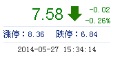 今 開: | 7.64 | 成交量: | 1.42萬手 | 振 幅: | 1.05% |