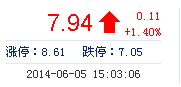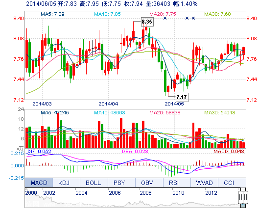 | 今 開: | 7.83 | 成交量: | 3.64萬手 | 振 幅: | 2.55% |