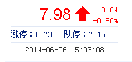 | 今 開: | 7.94 | 成交量: | 8.06萬手 | 振 幅: | 2.52% |