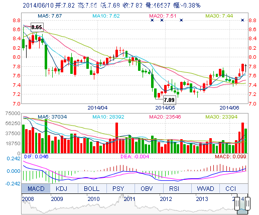 今 開: | 7.82 | 成交量: | 4.65萬手 | 振 幅: | 2.17% |