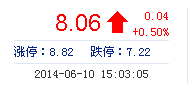 | 今 開: | 8.01 | 成交量: | 6.83萬手 | 振 幅: | 3.12% |