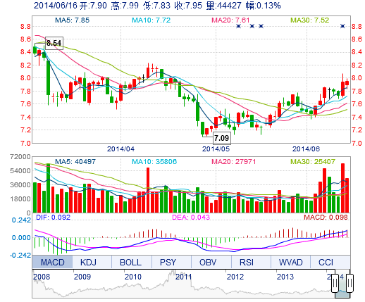 今 開(kāi): | 7.90 | 成交量: | 4.44萬(wàn)手 | 振 幅: | 2.02% |