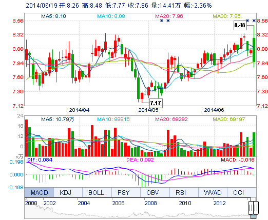 | 今 開: | 8.26 | 成交量: | 14.41萬手 | 振 幅: | 8.82% |