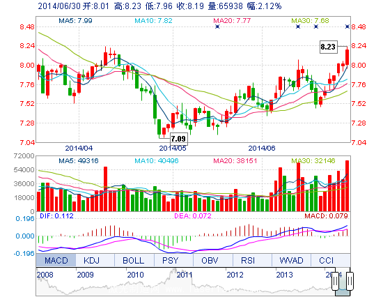 今 開: | 8.01 | 成交量: | 6.59萬手 | 振 幅: | 3.37% |